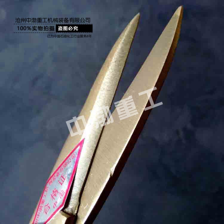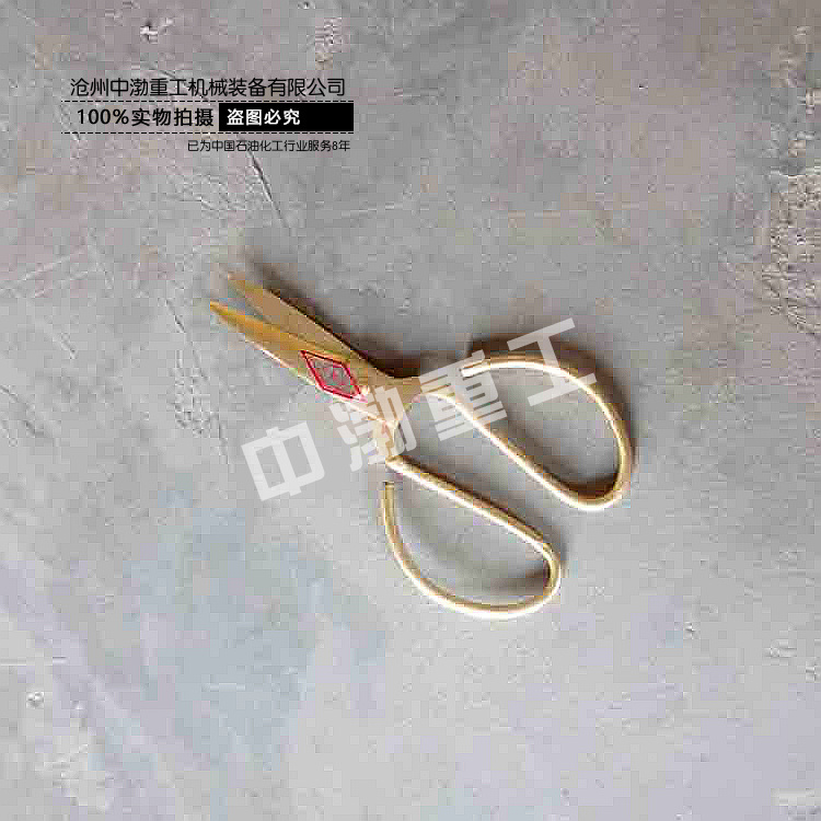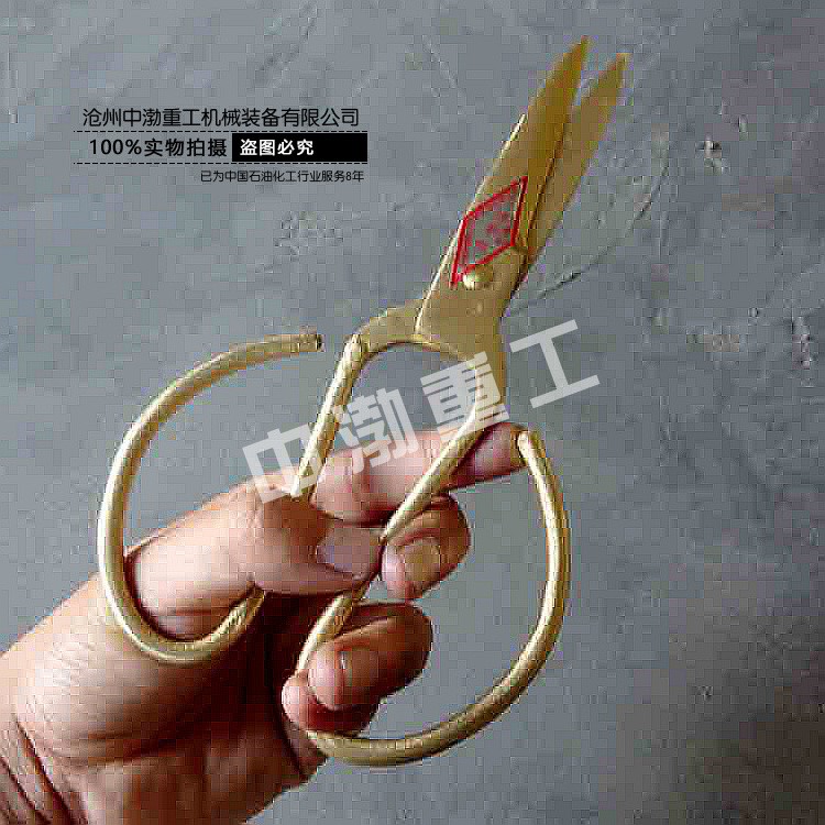 防爆剪刀形式多種多樣,有家用剪,裁縫剪,鐵皮剪等。其中家用剪的型號為:150mm,裁剪刀型號為:225mm,鐵皮剪型號為:12”,14”。 鐵皮剪刀主要是用于剪鐵皮,雙刃工具,兩刃交錯,可以開合。 一般由兩部分組成——大拇指控制的活動刀鋒,無名指控制的靜止刀鋒,兩部分有一顆螺絲固定。