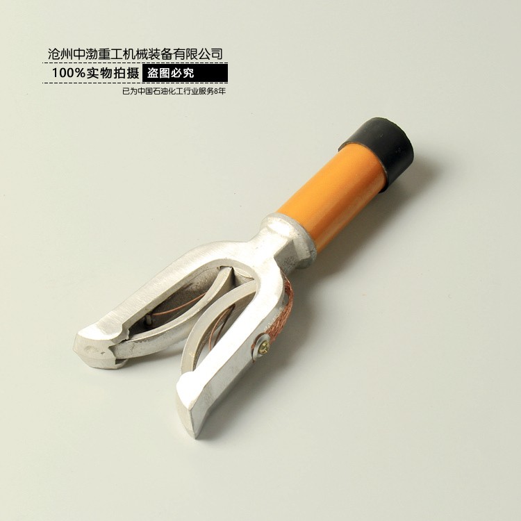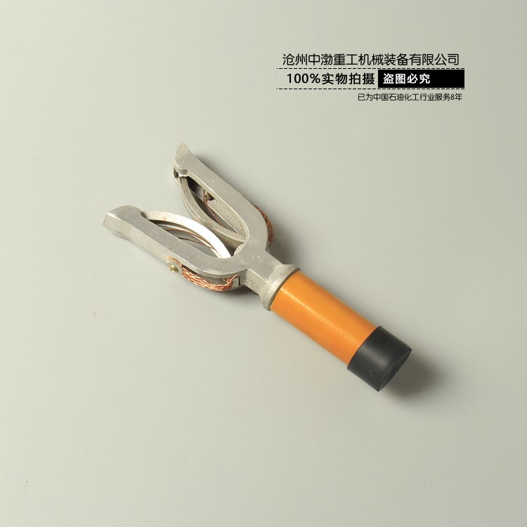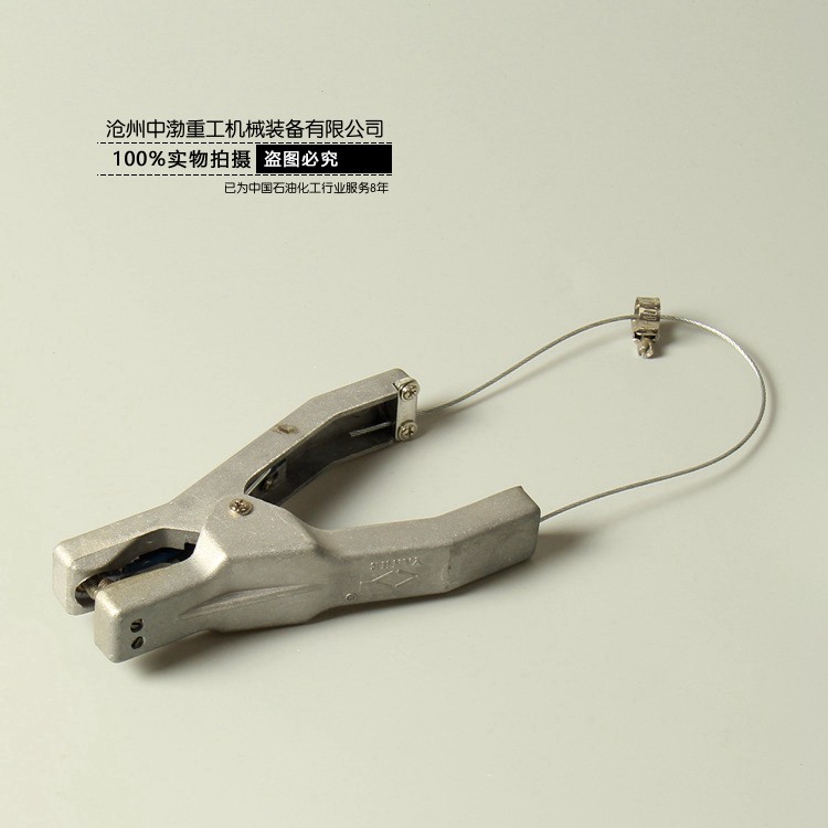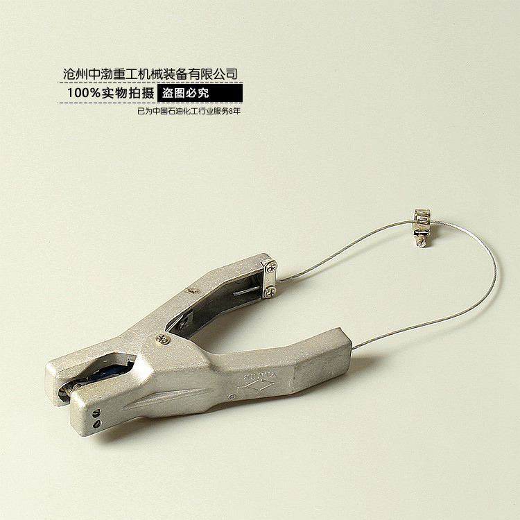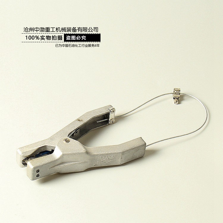 特點:靜電夾是能用以導出上述器械上靜電的專用工具。通常與金屬接地樁(接地銅排)或接地網相連,夾體通過高強度恒力彈簧夾持在需導靜電物體上,并通過尖銳的破漆、透銹頂針穿透物體表層的油漆、污漬等絕緣層,使得物體上積聚的靜電能被實時導走,確保作業(yè)安全。靜電夾一般配備直線或彈簧電纜使用。