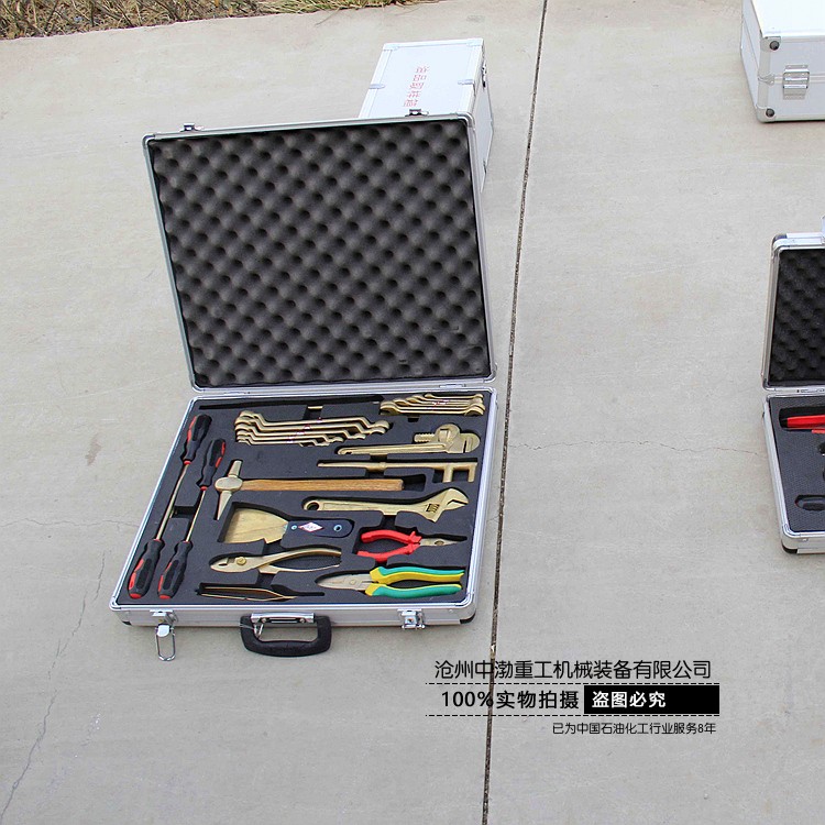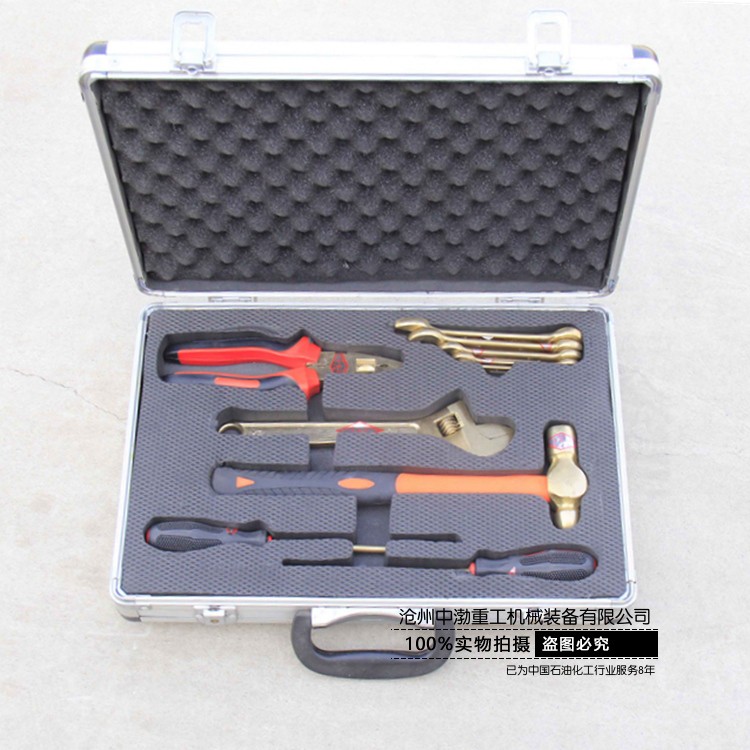 公司生產(chǎn)的防爆工具箱種類齊全,包括:加油站用組合工具箱、油庫用組合工具箱、天然氣用組合工具箱、礦山搶險用組合工具箱、檢維修用組合工具箱、成品油計量工具箱等。  工具箱規(guī)格:7件套、10件套、12件套、16件套、24件套、30件套、32件套、36件套、42件套、50件套、56件套、100件套等。公司還可以根據(jù)客戶的實際工作需要組合常用的防爆工具套裝。   公司生產(chǎn)的防爆工具有400余個系列近萬種規(guī)格。該產(chǎn)品能有效的防止工具與工作物相互摩擦、撞擊時產(chǎn)生的可燃性爆炸,確保財產(chǎn)和人身安全。廣泛用于石油、化工、礦山、防恐怖、防磁場、煤礦、采氣、油氣管道、發(fā)電、冶金、航空、儲運、制藥、制氣、塑料、化纖、皮革、煙火、爆竹等行業(yè)。